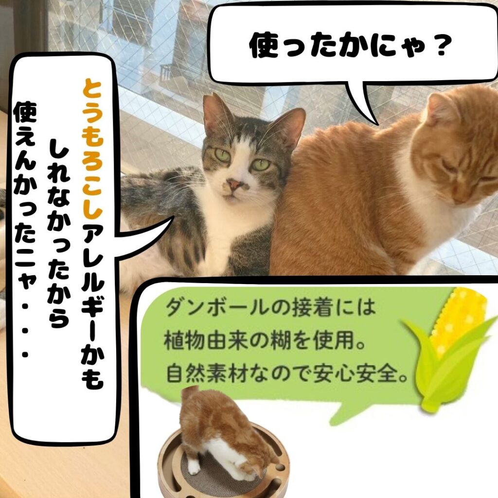 とうもろこしアレルギーの猫は使えそうにないにゃん・・・