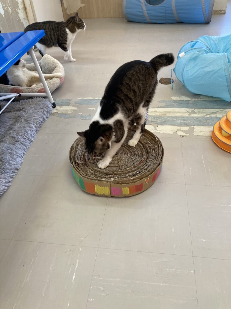 爪とぎの上で寝る子もいて爪とぎが猫達に人気でみんな使ってくれたのが嬉しかったです。